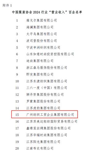 喜報:紡織公司連續(xù)多年榮登“中國服裝行業(yè)百強(qiáng)企業(yè)”榜單