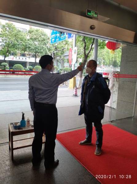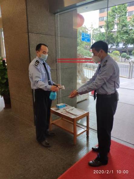 三是實(shí)干防控。在春節(jié)放假前抓緊采購(gòu)口罩、測(cè)溫儀、酒精等防控物資,并向員工發(fā)放口罩。春節(jié)假期,一線的值班領(lǐng)導(dǎo)、值班干部以及門崗等積極應(yīng)對(duì)防控工作,對(duì)管理的廣德大廈定時(shí)進(jìn)行消毒,登記每名來訪人員并測(cè)量體溫、手部消毒。同時(shí)制定方案,籌備復(fù)工后疫情防控工作,并對(duì)大廈保潔、廚房、維修、保安等人員均作了防疫工作安排。